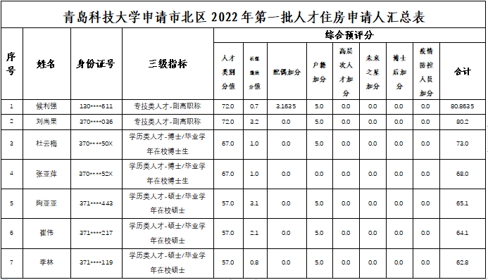 根据《青岛市人民政府关于加强人才住房建设和管理的实施意见》(青政发〔2020〕2号),以及市北区2022年第一批产权型人才住房配售公告,现将必赢官网申请此次配售人员情况公示如下,公示期自2022年5月10日至2022年5月12日,公示期3个工作日。公示期间,如对公示人员有异议,请及时反映。